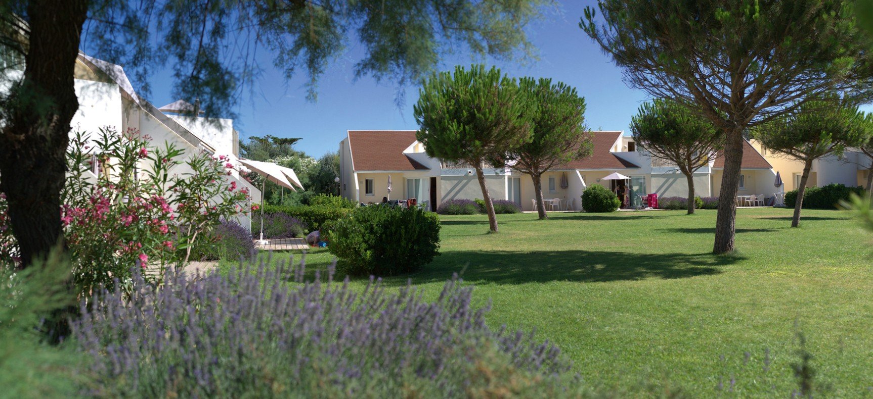 L'établissement propose des prestations complètes : piscine chauffée avec solarium, terrain multisports, court de tennis, activités pour enfants en saison, Wi-Fi, espaces verts et animations estivales. La copropriété est composée d’environ 170 logements meublés organisés en petits bâtiments avec terrasses.