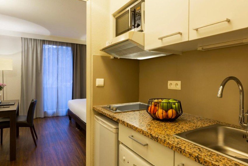 L'établissement propose des prestations complètes : accueil, petit-déjeuner, blanchisserie, Wi-Fi, parking et services hôteliers. La copropriété se compose de 98 appartements répartis sur 7 étages.