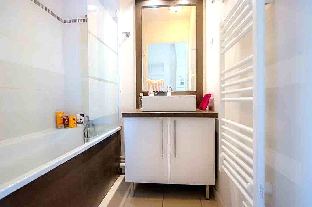 Cet appartement T2 cabine situé au 1er étage offre une disposition fonctionnelle et agréable, comprenant :une entrée avec placard, un séjour avec kitchenette, une chambre avec placard, une cabine, une salle de bains, un wc, un balcon.