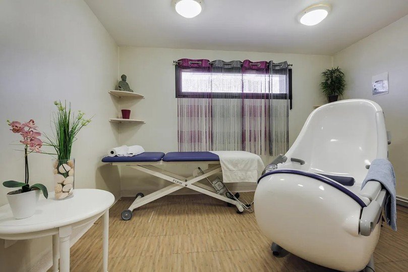 L’établissement propose services complets : restauration sur place, balnéothérapie, espace kinésithérapie, ateliers créatifs, animations variées, salon de coiffure, espaces communs de détente, et jardin extérieur.