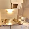 Cet appartement T2 situé au 1er étage offre une disposition fonctionnelle et optimisée. Il comprend une entrée avec coin cuisine, deux pièces principales, une salle de bains et un WC.