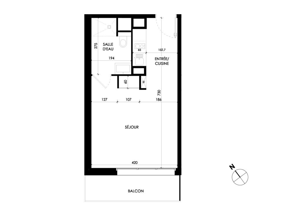 Ce studio de première main, situé au 3ème étage offre une disposition optimisée et agréable : une entrée avec kitchenette, un séjour ouvert sur un large balcon, une salle d’eau avec wc. L'appartement est entièrement climatisé.