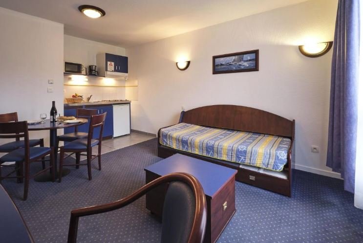L’établissement propose des prestations complètes : piscine extérieure en saison, parking privé, Wi-Fi gratuit, climatisation, laverie, local à vélos, service hôtelier, kitchenette dans les logements, salon, jardin, confort et services divers. La copropriété est composée de 77 studios et 37 appartements, pour une capacité totale de 314 personnes.